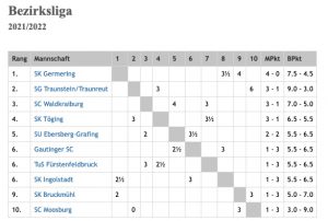 1. Mannschaft in der Bezirksliga 2021/2022 nach zwei Runden auf Platz 6